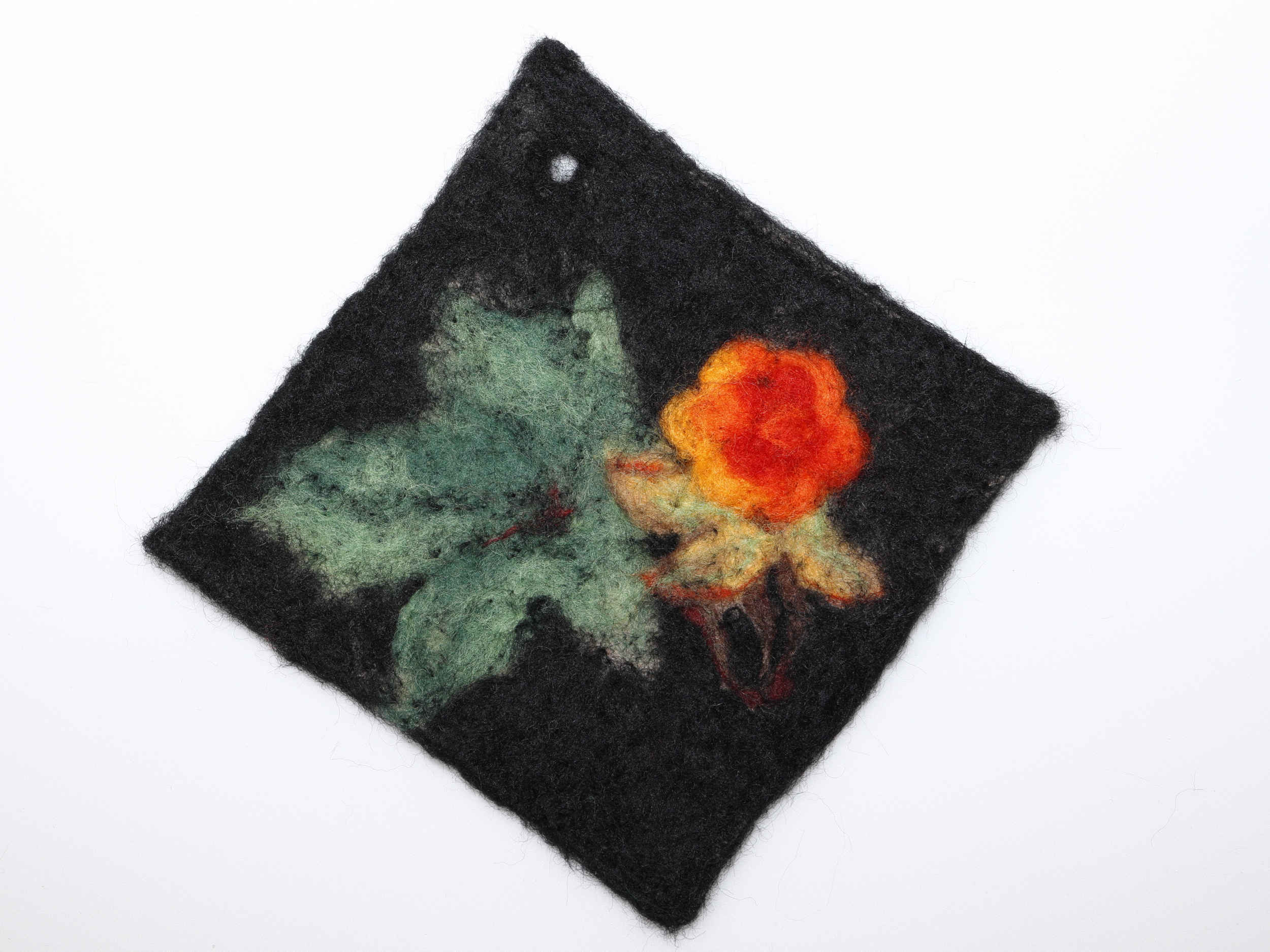 Nålfiltad grytlapp, tillhör serien ”Hjortron”