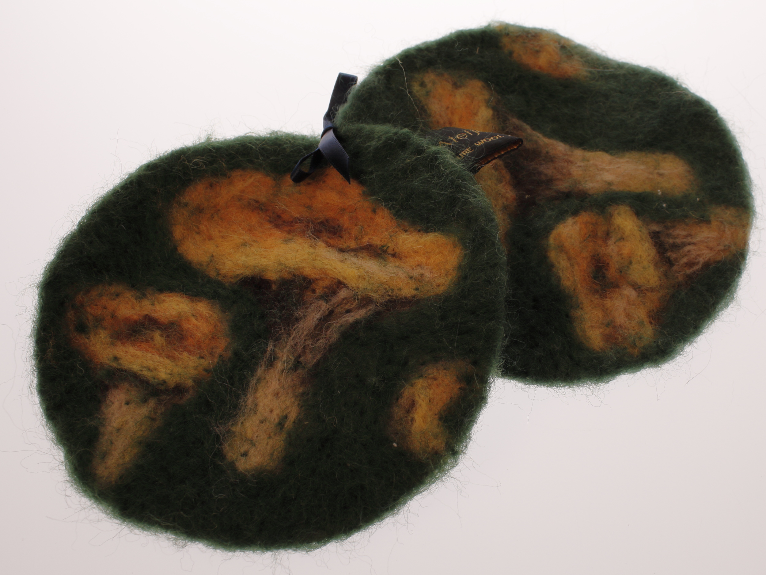 Nålfiltade tekoppsunderlägg, två st.
