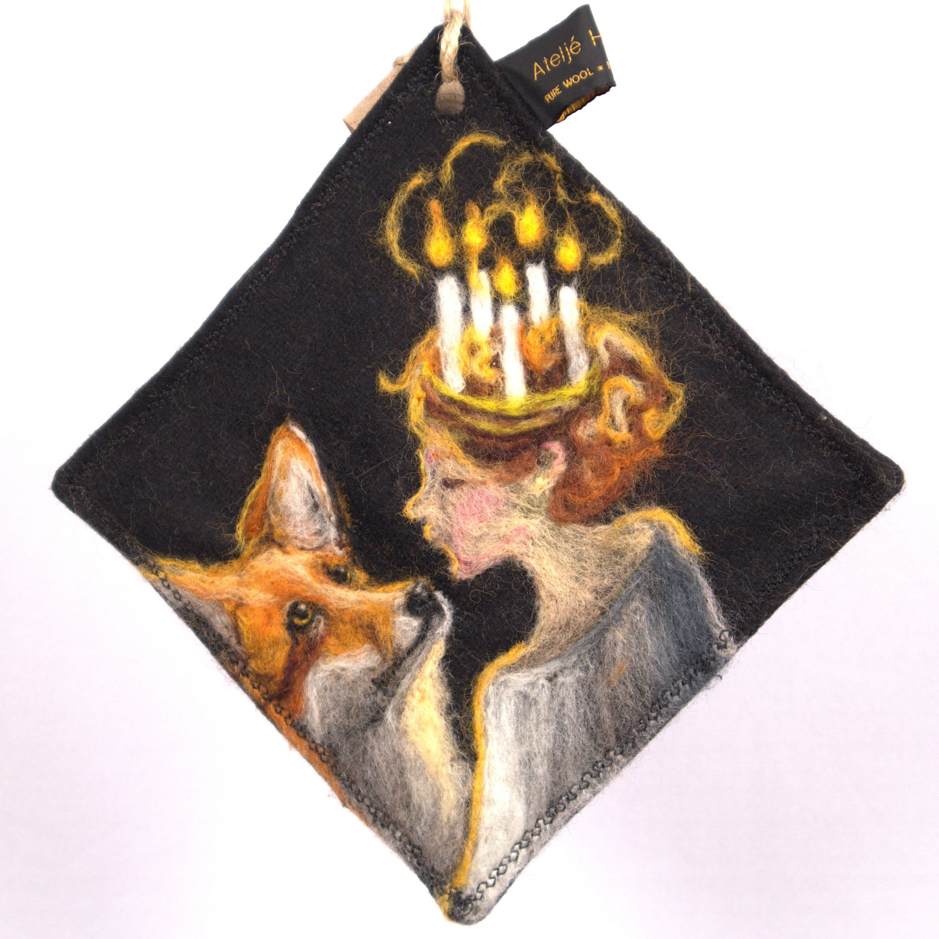 Nåltovad grytlapp. En av två, med lucia och vän, -24