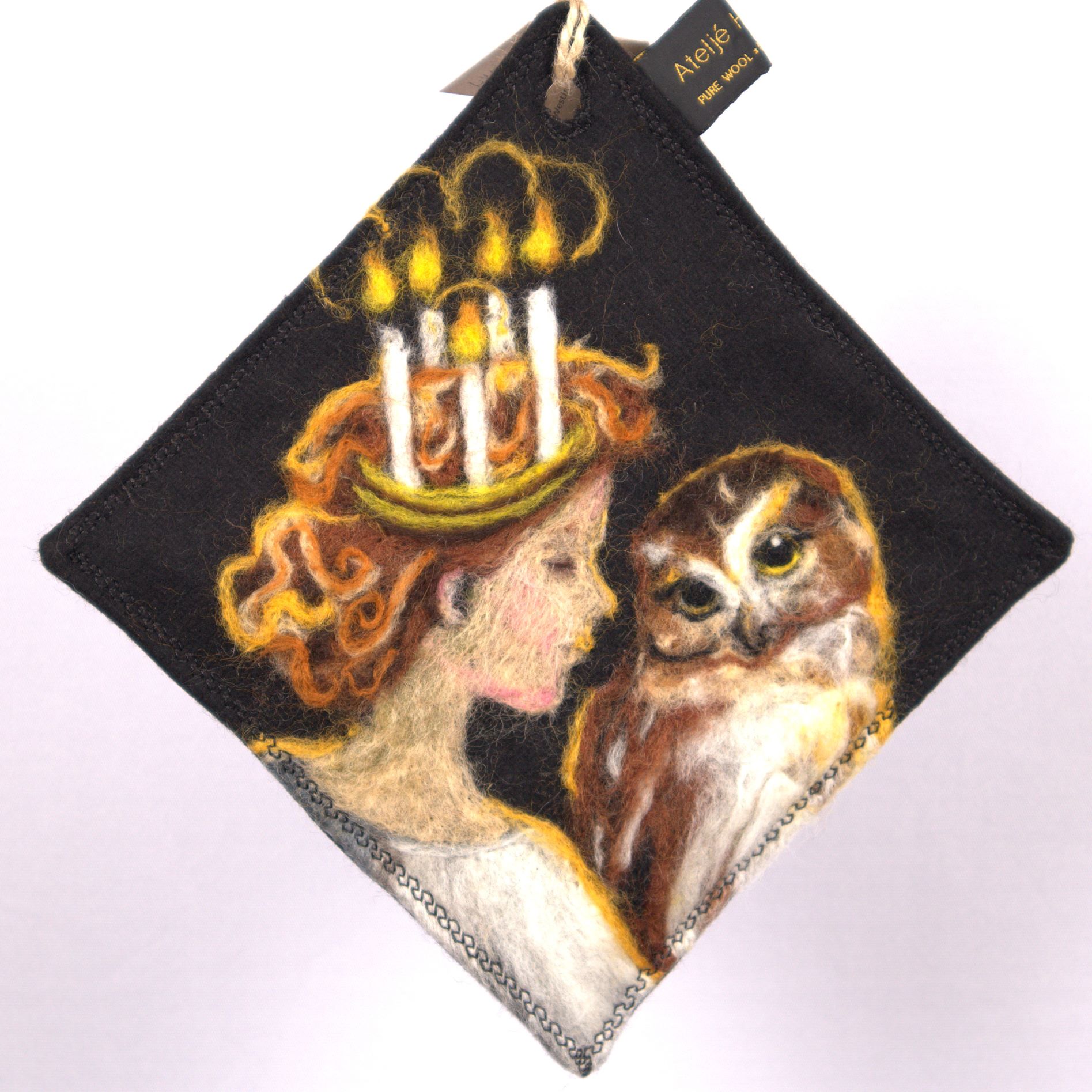 Nåltovad grytlapp. En av två, med lucia och vän, -24