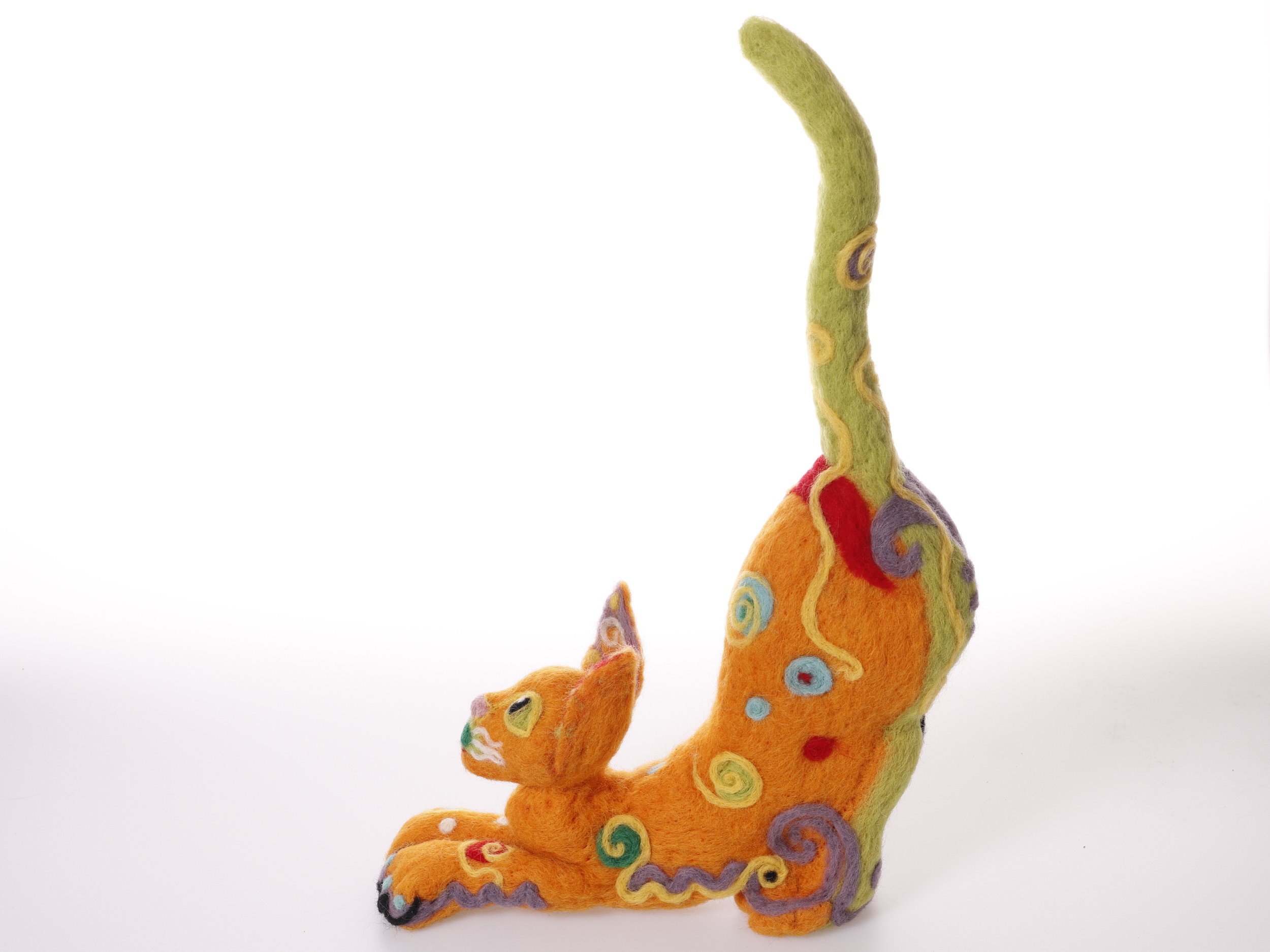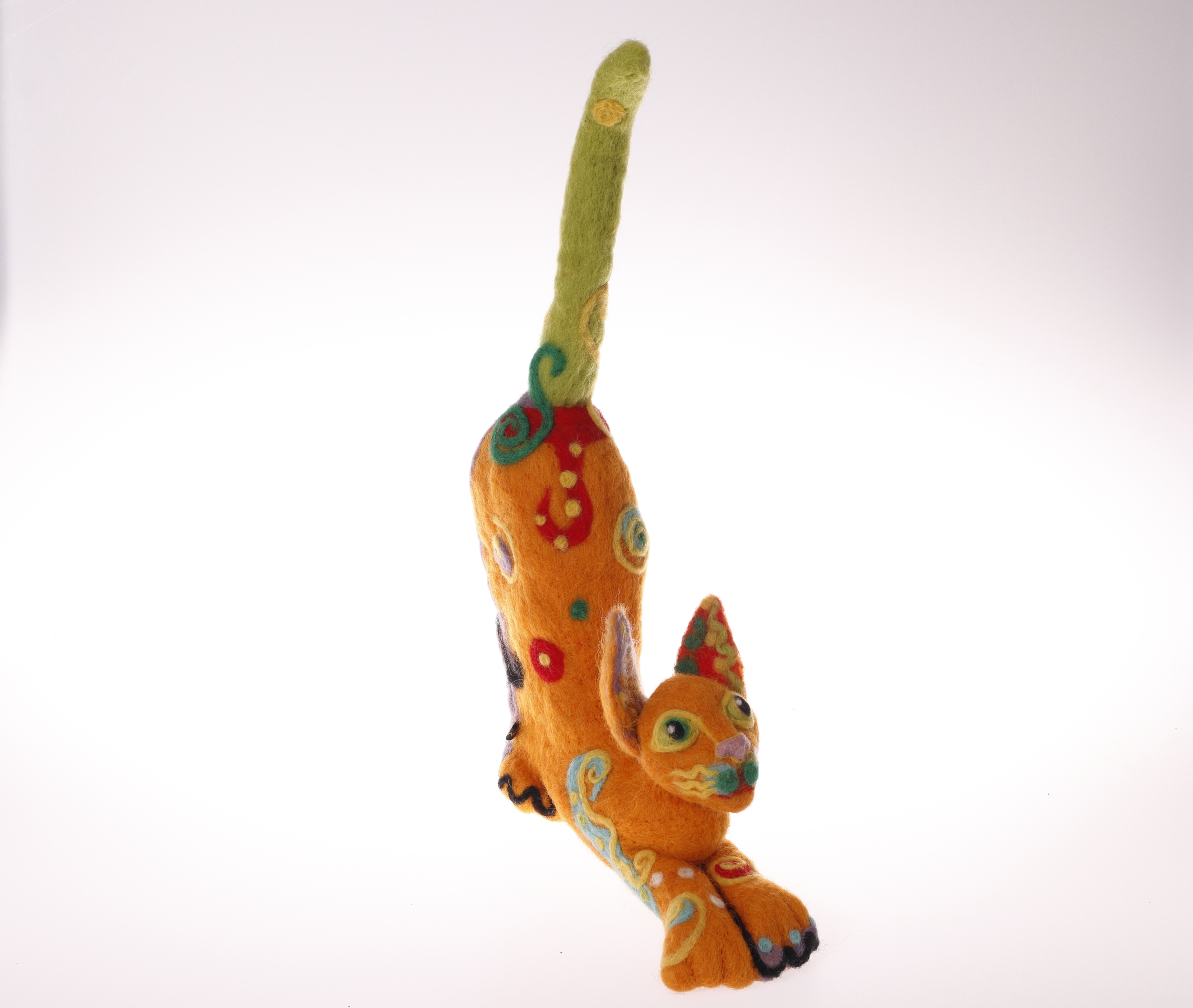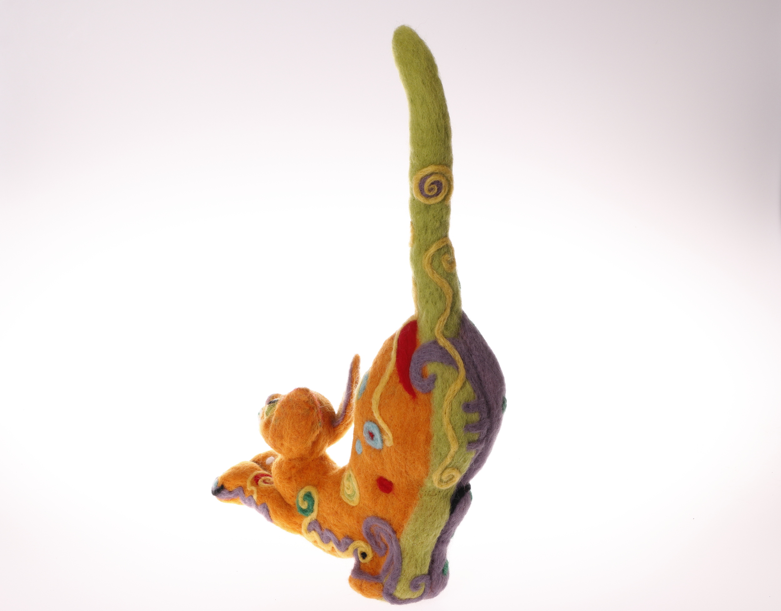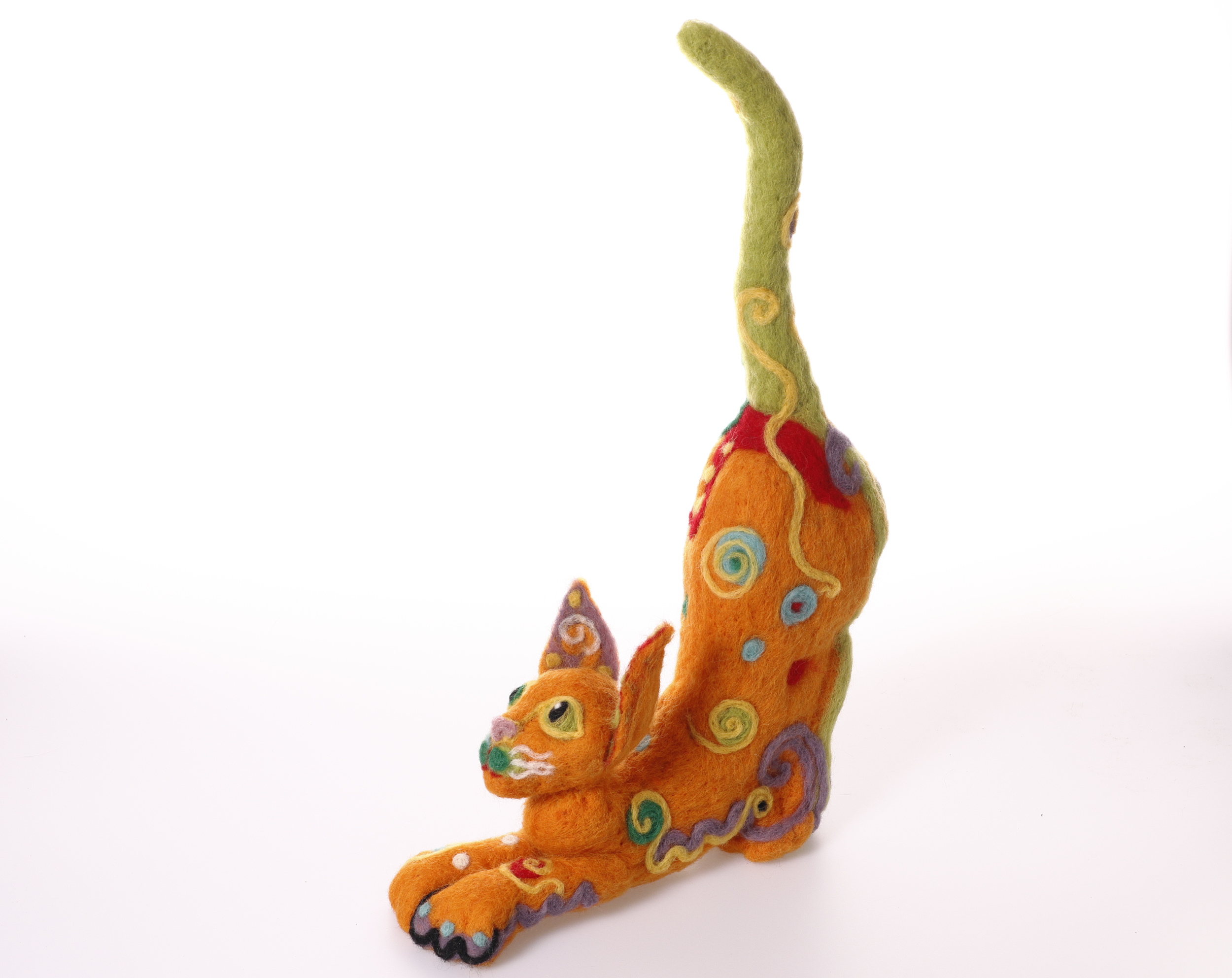 Nålfiltad orange sagokatt.