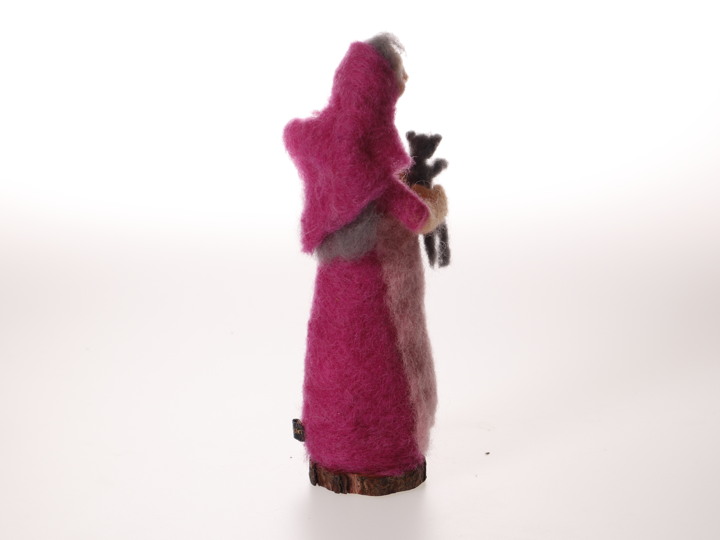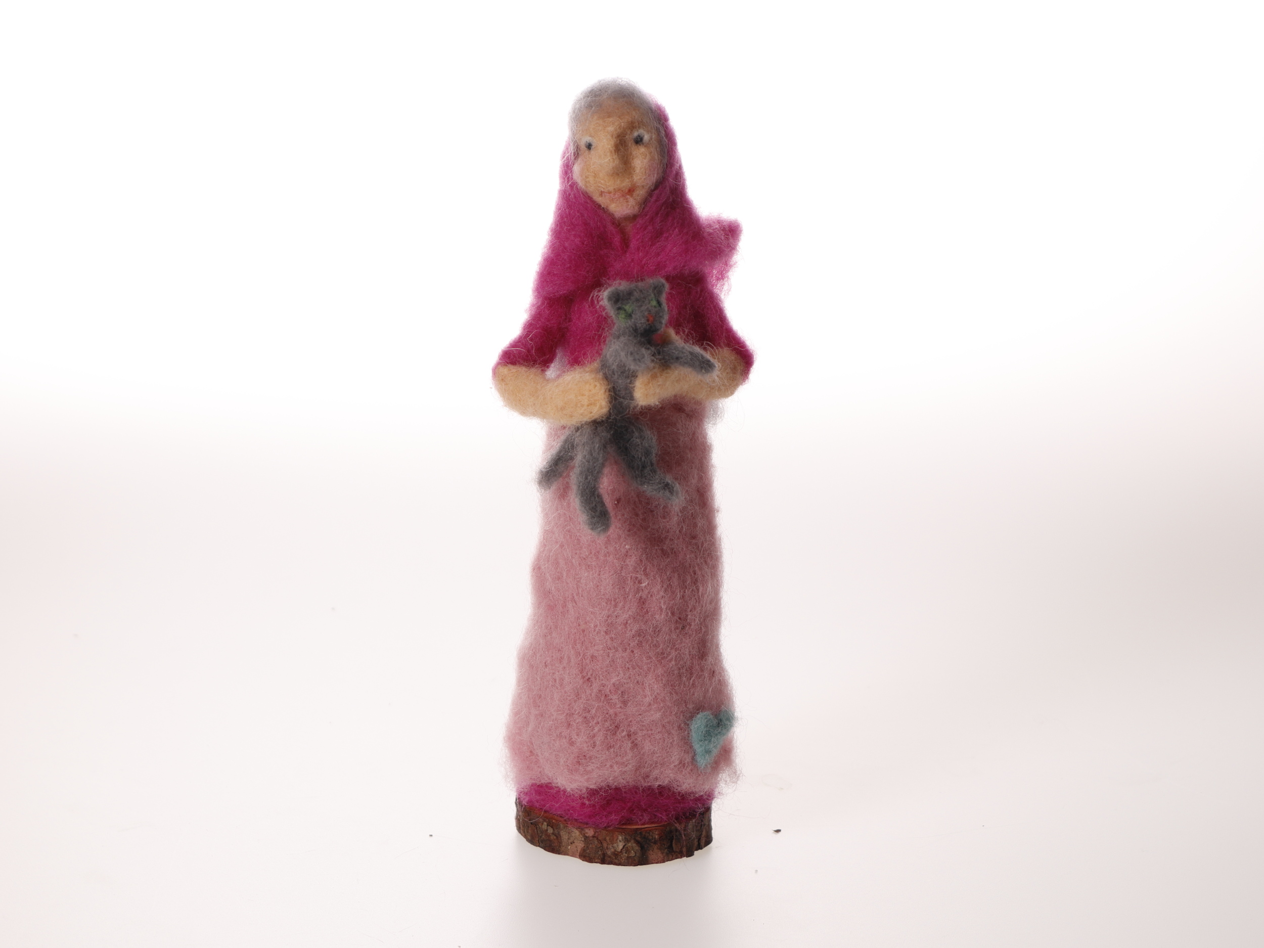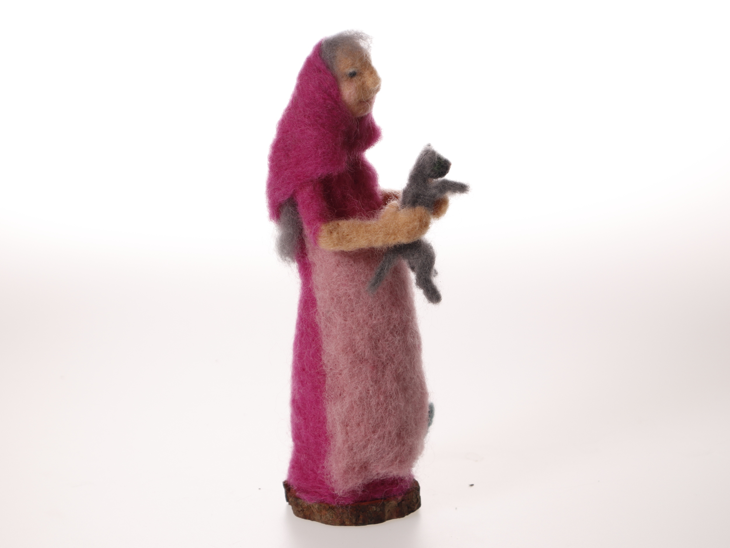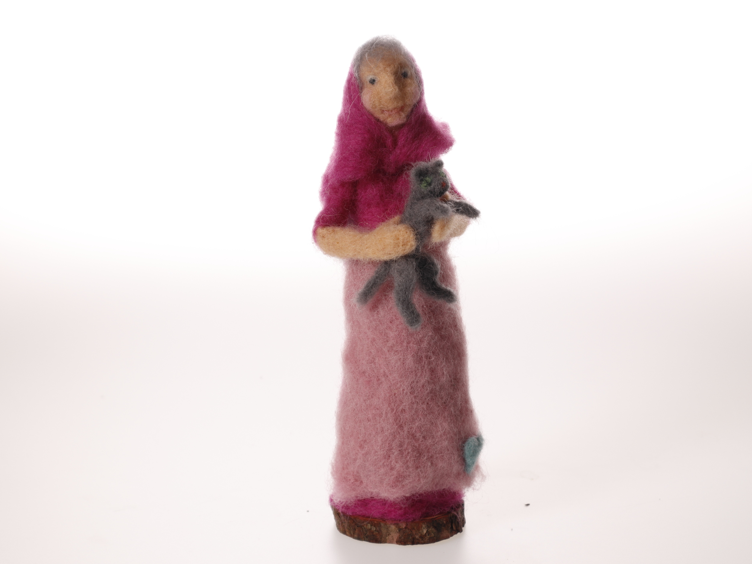 Nålfiltad påskkärring med grå katt. En av åtta stycken i samma serie