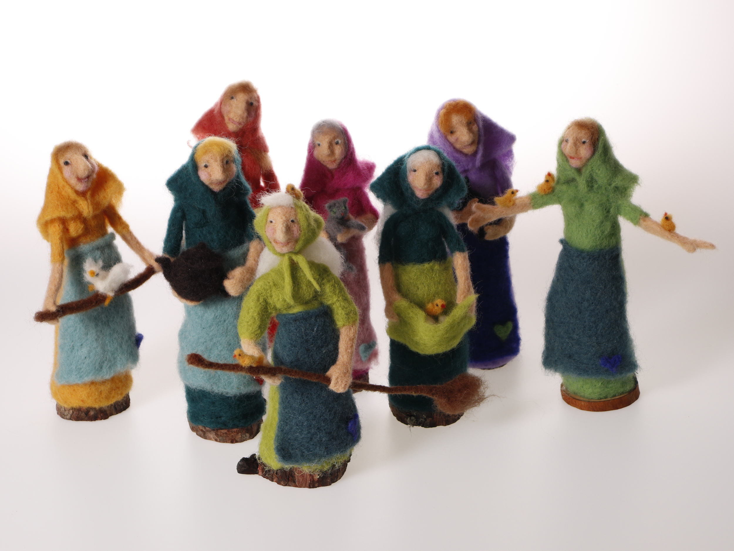 Nålfiltad påskkärring med höna. En av åtta stycken i samma serie