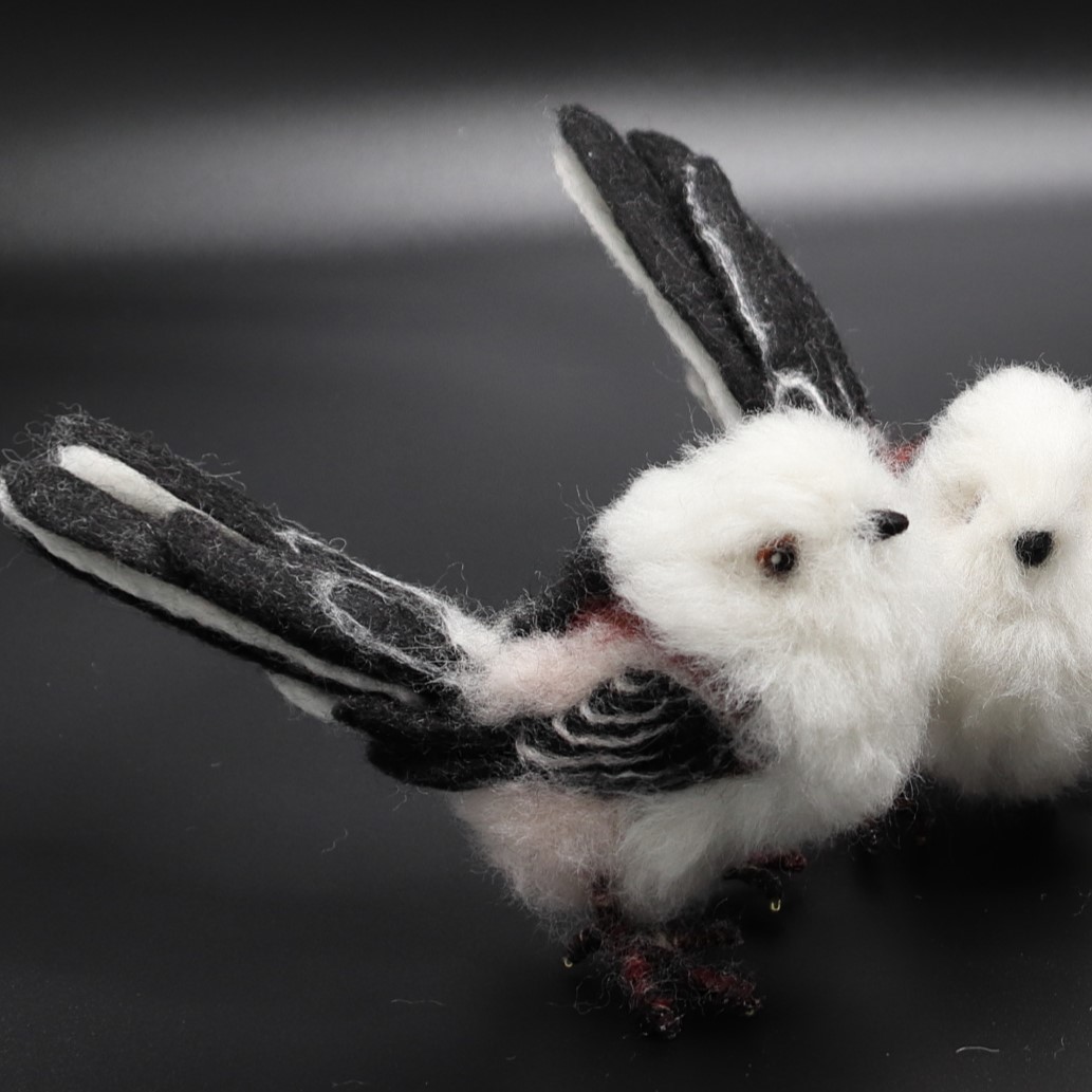En nålfiltad småfågel, stjärtmes.
