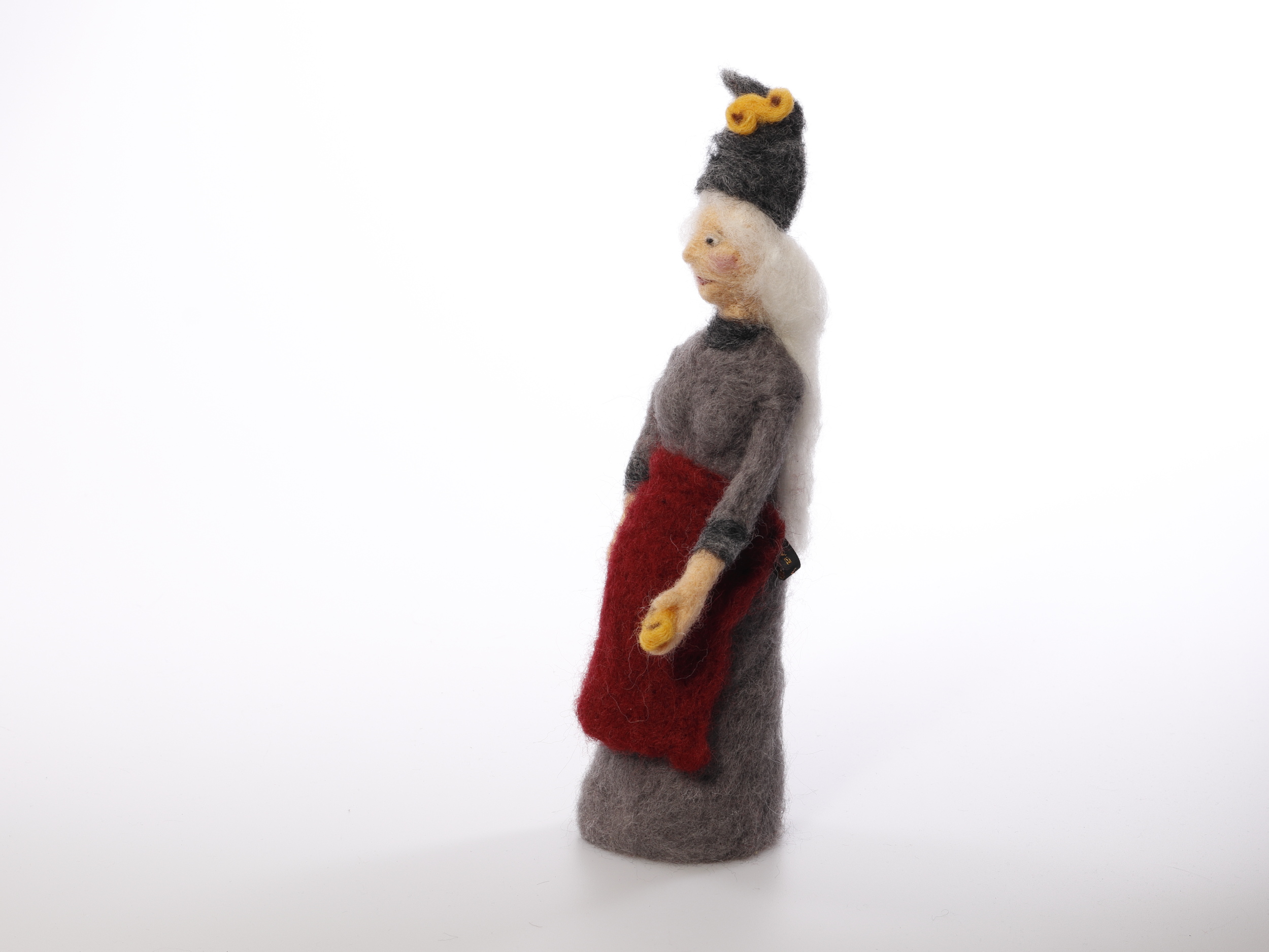 Tomtegumma med lussebullar, nålfiltad, tillhör serien ”Tomtegummor”