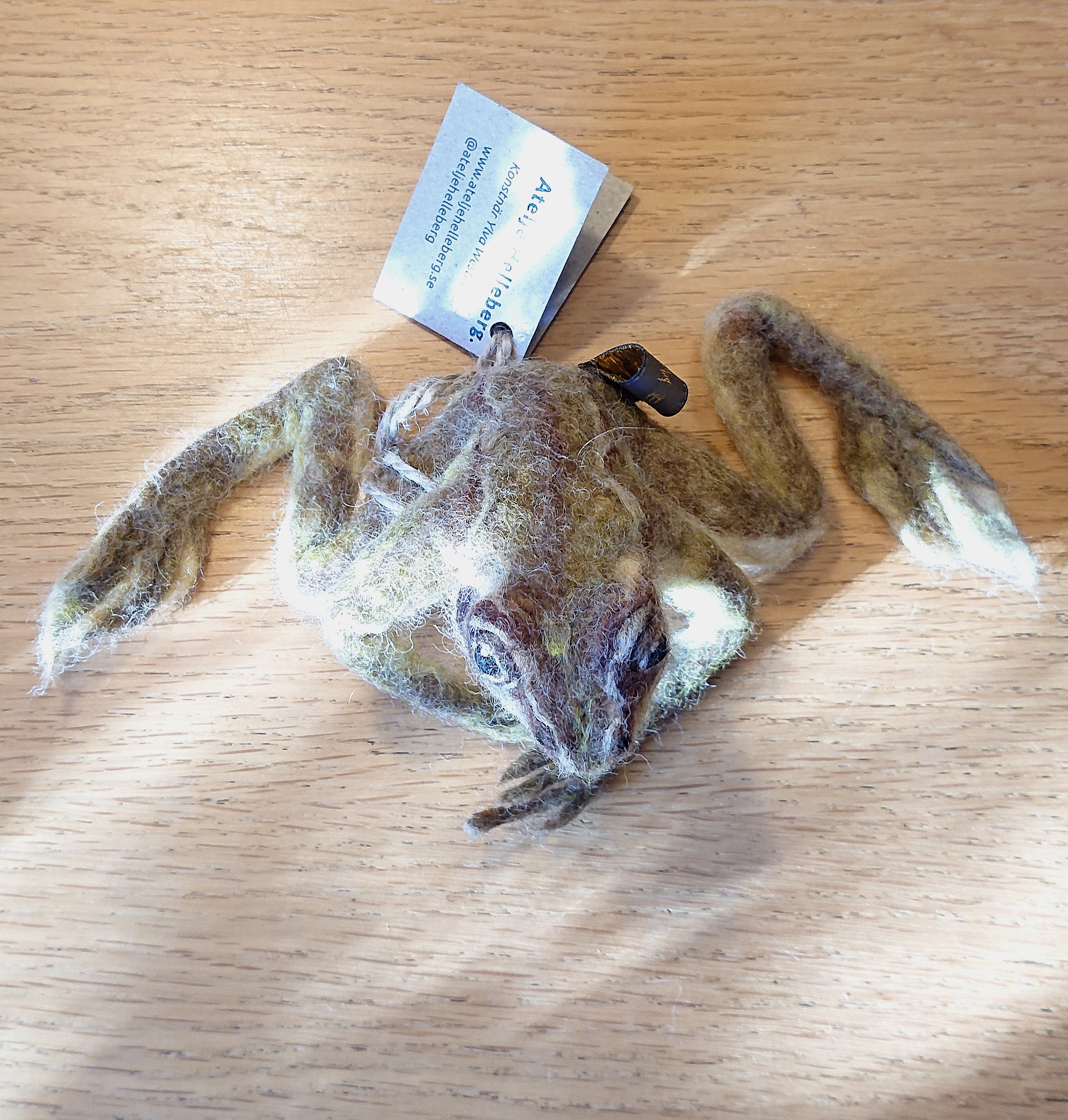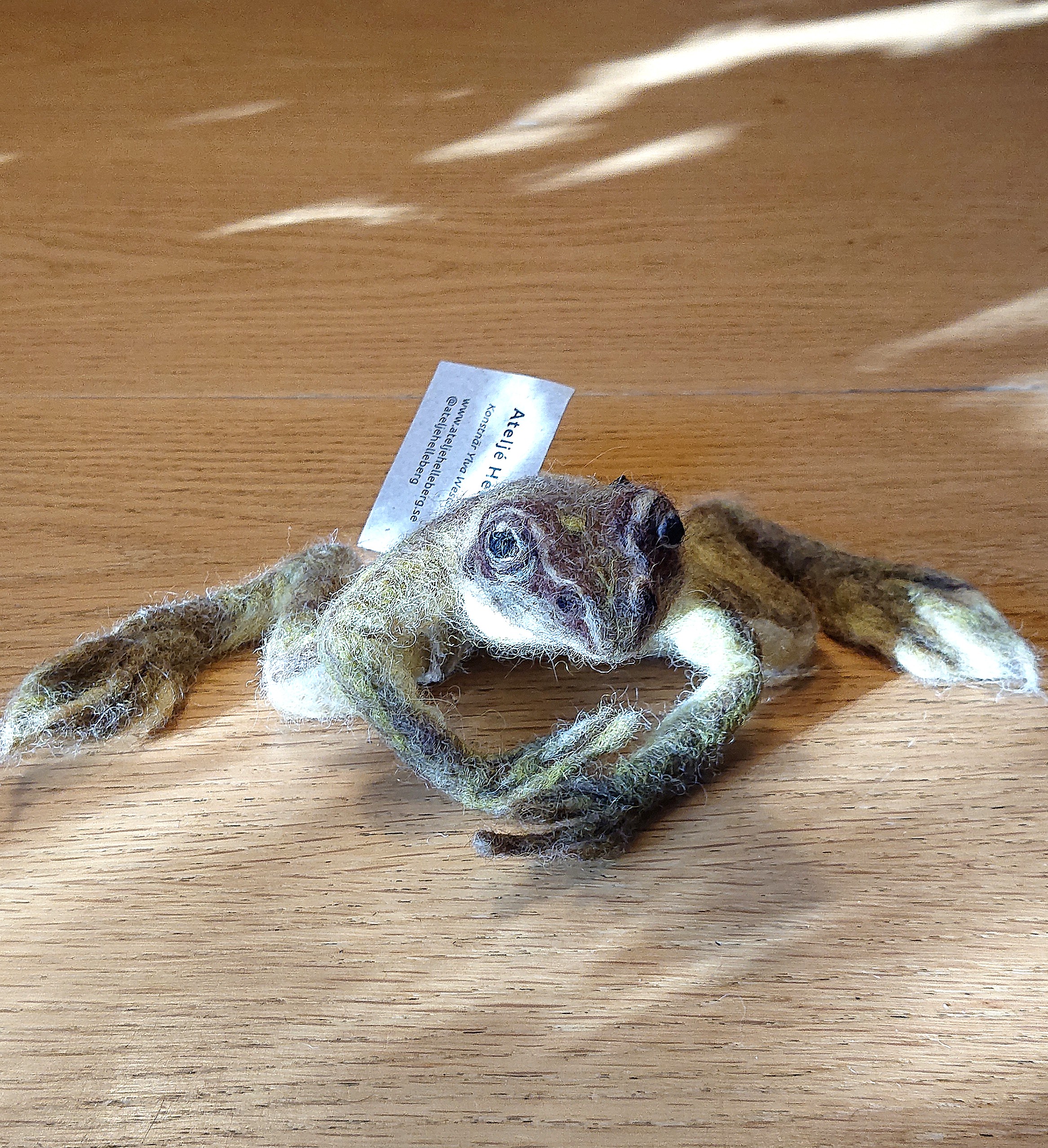 Nålfiltad vanlig groda, modell större. En serie om tre st.